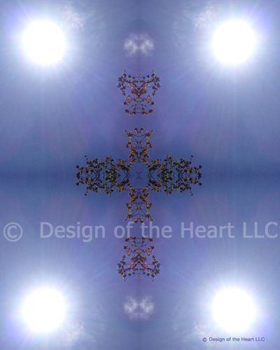 The mirroring process. Taking the photo of God's Lamb and mirroring it side to side and top to bottom. The visible CROSS is the derivative of the branches of the Sweet Gum Tree.
