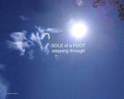 The overlay sketch of the sole of a foot stepping through the sky (the earth is His footstool). The front legs of the lamb are wrapped around the sole of the foot.