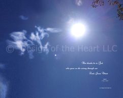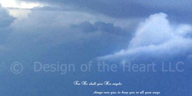 After the finalization of the Christian designs (scriptures of healing, faith, praise...) printed on bed sheets, pillow cases, and duvet covers, which were a derivative of a very deep personal need, I was trying to decide whether to make the bedding items available to the public and share the revelation. During endless prayer seeking God’s guidance and direction, God gave me an entire series of images in the sky. These images are not only connected to the previous mentioned designs, but the images also created a significant pictorial in connection to the books of Matthew, Revelation, as well as Psalms 91 and 147.