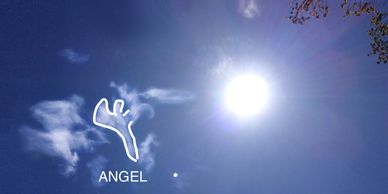 I took a picture of a cloud in the sky and the branches of a SWEET Gum Tree unexpectedly appeared in the photo. I recognized the image in the cloud formation as God’s Lamb, lying stretched out on its side and holding onto a foot stepping through the sky. Also in the image of the lamb are an angel, and the figure of a rider in a side profile. Turning the photo at a 90 degree angle, a side profile of an angel blowing a trumpet becomes visible as well.