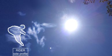 and the figure of a rider in a side profile.