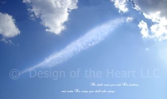 The cloud image of this perfect feather reflects Psalm 91:4 "And He shall cover you with His feathers..." (it is also very similar to the feather on the new 100 dollar bill, the feather-pen that signed the Declaration of Independence, next to the liberty bell - representing freedom)